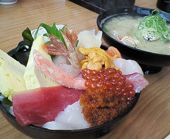 札幌の中央卸売市場にて食事。ちらしとかに汁。当然ですがうまくてうまくて。イクラもウニも興味の無い私が食ってもそうとううまいのです。そりゃあうまいに決まっています。