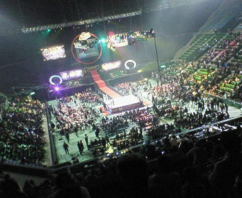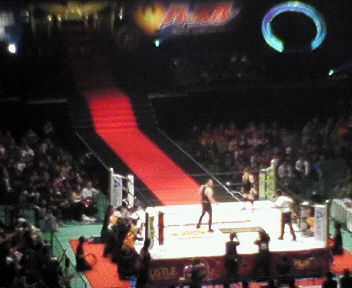 全試合終了後、酒井くんの案内でリングサイドへ。聞くとこの辺の席は¥100,000とかするんだと。すげえな!ちゃんと埋まってたぞ。不況ってほんとか?と思う。リングサイドにはTV収録用のゲスト「叶姉妹」がいました。うんげえカラダしてました。ある意味レスラーよりうんごかったです。