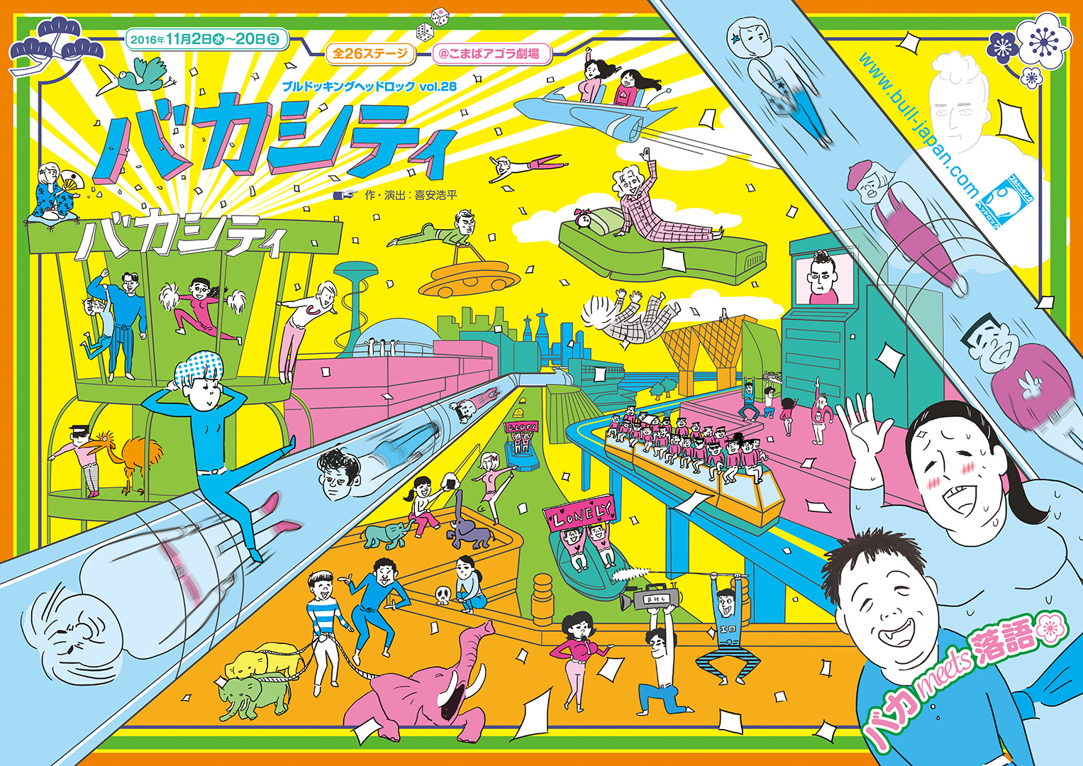 えー、今回は、だいたいのものであったり、パンツを履かない奴がいたりして、誠に申し訳ありませんでした。いつか皆様に、本当のバカシティをご覧いただきたい。そう強く願っています。その時のために、今は目の前にあるもう一つのバカシティに全力で取り組みたいと思います。そのためにはまずバカな気分を。バカな気分が必要だ。夜中、フローリングの床で火照った尻を冷ましていた私は…ご来場をお待ちしております。