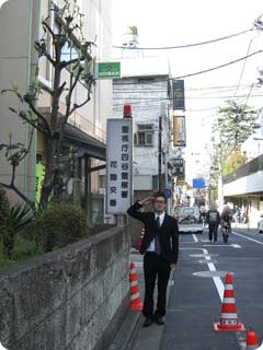 『ニッセイ同和損保』の看板や『花園交番』を尻目に、脇道のような狭い通りを、ひたすら直進します。